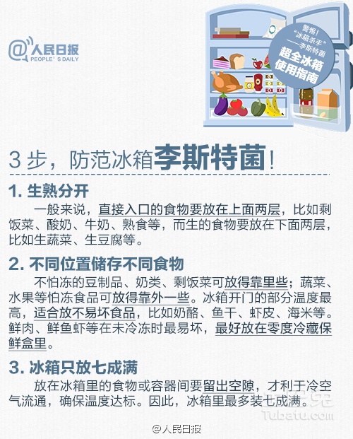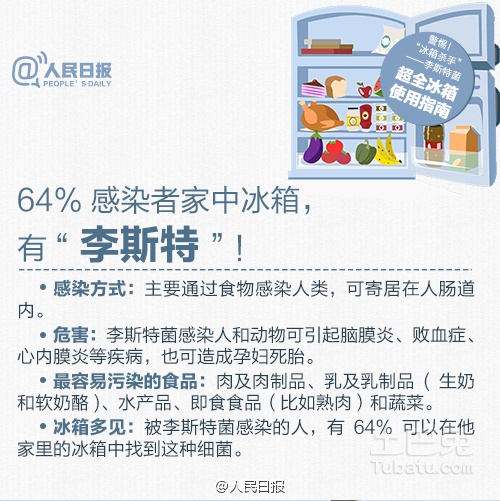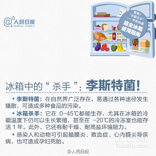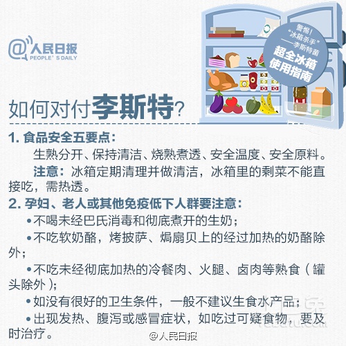 近日,國(guó)家食藥監(jiān)總局發(fā)布風(fēng)險(xiǎn)提示,李斯特菌已成威脅食品安全的重要因素。李斯特菌可致腦膜炎、敗血癥等,也可造成孕婦死胎;64%感染者家中冰箱有它身影。如何應(yīng)對(duì)?使用冰箱該注意什么?
