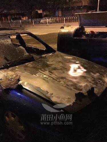 垃圾桶不知道怎么了著火了,燒到了旁邊的一輛轎車。轎車被燒得面目全非,也是倒霉!