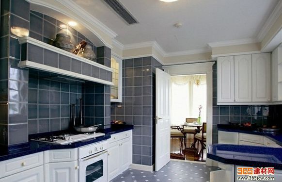 廚房的墻面磚也可以選擇一些冷色的色調,不僅可以吸收廚房的熱量,而且能從感覺上使人在炎炎夏日當中倍感寧靜,心里面的降溫往往要比身體的感受來得更重要。白色的櫥柜配上簡單的瓷磚紋理,其實也可以在簡單之余做得不簡單。