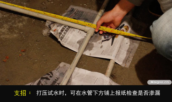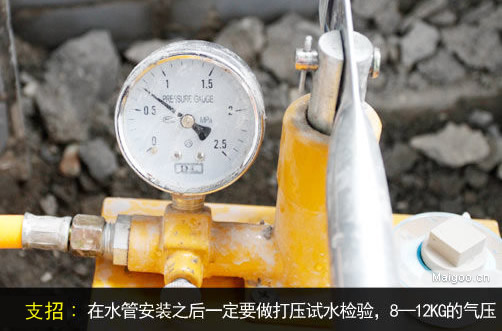 在水管安裝之后一定要做打壓試水檢驗,測試通過不漏水后才能正常使用。打8―12KG的氣壓,氣壓至少保持半個小時以上才算合格。