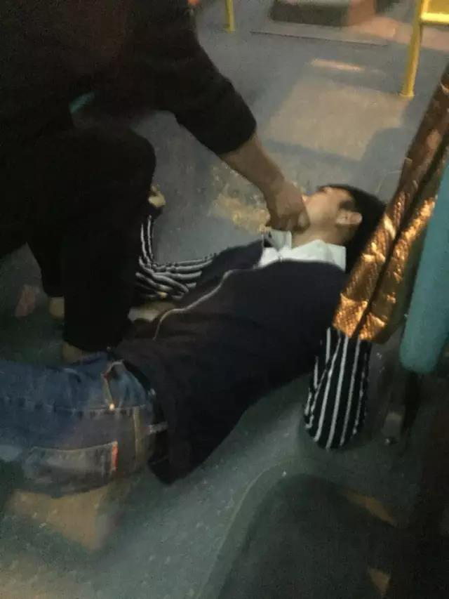 昨晚坐公交,遇到這么一件突發(fā)事:一男子起身要下車,按下車鈴!忽然"砰"的一聲倒車上了!把我嚇得趕緊叫司機(jī)停車!只見該男子倒地嘔吐,忽然一個(gè)黑影從我眼前掠過,一位大叔沖上前去,不顧男子嘔吐物,伸手掐著男子人中。
