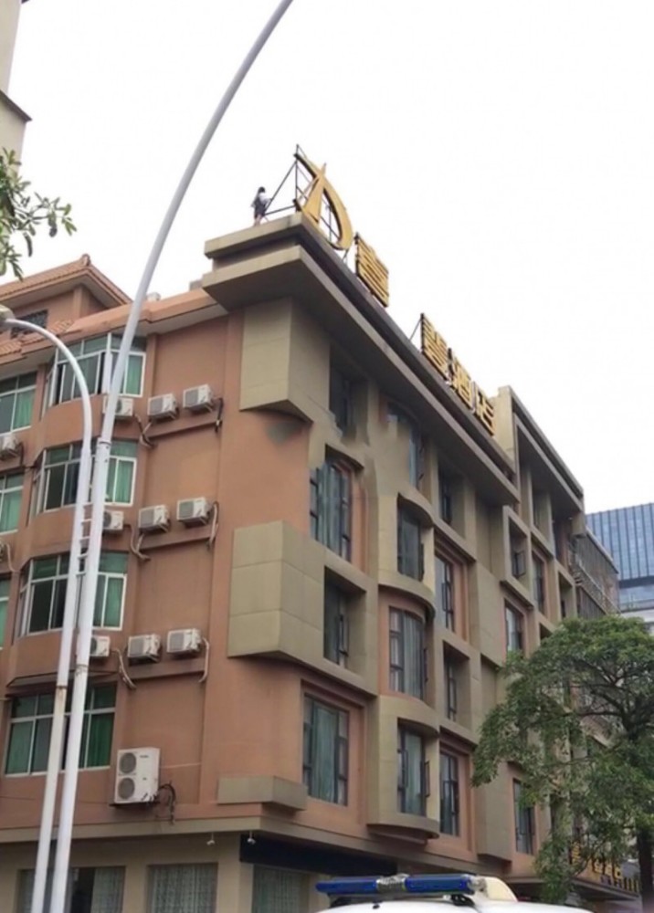 今天早上,在涵江新涵大街體育場某酒店房頂,疑是有位妹子在那里要跳樓。消防跟JC都來了,有什么想不開至于這樣嗎?