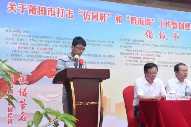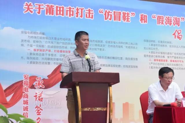 今天上午,莆田安福電商城大門口人聲鼎沸,許多網(wǎng)友路過不明就里,紛紛發(fā)帖詢問這里發(fā)生了什么事。 據(jù)小編了解,原來這里正在舉行莆田市打擊“仿冒鞋”和“假海淘”專項(xiàng)行動(dòng)動(dòng)員大會(huì)。據(jù)說連央視記者都來采訪了,不知道真的假的。 整個(gè)動(dòng)員大會(huì)的主題,主要就是說:要嚴(yán)厲打擊“仿冒鞋”和“假海淘”,協(xié)調(diào)工商、公安、交警、郵政管理局等部門嚴(yán)密配合工作,并歡迎民眾舉報(bào)。讓大家多多學(xué)習(xí)一些做的好的自主品牌,打造安福電商城的新風(fēng)貌。 具體內(nèi)容都在下面這個(gè)倡議書上,做阿冒的趕緊看看吧。