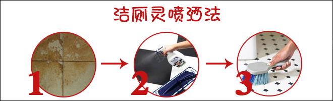 ② 廁靈噴灑法:靠近地面的幾排墻磚容易出現(xiàn)黃色水堿樣污垢,可以將清理馬桶用的潔廁靈裝入噴壺內(nèi),由上而下地噴到瓷磚上,過(guò)10分鐘后再用刷子進(jìn)行清理。
