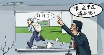 如果施工隊(duì)偷工減料,對(duì)防水層的厚度達(dá)不到,或者沒(méi)經(jīng)過(guò)嚴(yán)格的閉水測(cè)試,那么就會(huì)可能出現(xiàn)如上圖所示的漏水情況。雖然水是漏到樓下的,但作為業(yè)主對(duì)此是要承擔(dān)責(zé)任的,如果等衛(wèi)生間瓷磚都鋪設(shè)完了才發(fā)現(xiàn)漏水,那么再砸地磚重新做防水,不僅耽誤工期,而且也損失材料費(fèi)用,對(duì)樓下住戶造成的損失也要彌補(bǔ)。