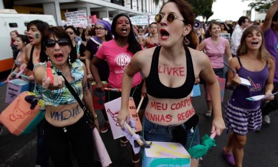 一場反對針對婦女暴力的抗議游行活動(dòng)——“蕩婦游行”于普世青年節(jié)期間在里約熱內(nèi)盧的街道上舉行。巴西蕩婦游行超6000人參加,除了抗議針對婦女暴力,今年游行還提出了“國家政教分離”、“墮胎合法化”、“規(guī)范賣淫行為”、“反對胎兒規(guī)約”等主題。