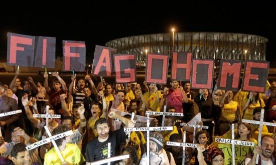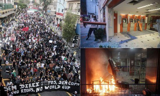 在里約熱內(nèi)盧和巴西利亞,示威者們在政府門前游行,在貝洛奧里藏特,大約2000人走上街頭,許多人拿著“國際足聯(lián)滾回家!”的橫幅。除了游行示威,巴西還爆發(fā)了大規(guī)模的罷工,其中甚至包括警察。在東北部城市累西腓,暴徒們趁著警察罷工洗劫了商店。