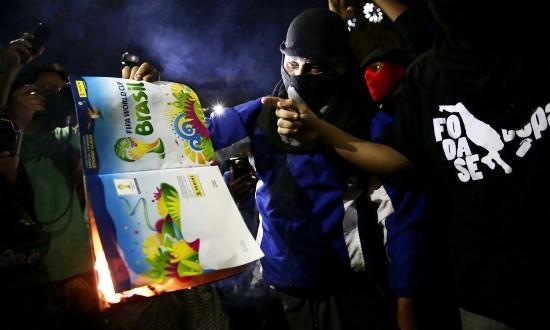 大學(xué)生多斯桑托斯說:“我們反對把過多的錢花在世界杯上,這些錢應(yīng)該被投到醫(yī)療、教育以及交通和住房中?!碑?dāng)抗議人群靠近市中心時(shí),隊(duì)伍中一些無政府主義者攻擊了一輛空警車,其他人還點(diǎn)燃了一輛小車,并打碎一家銀行的窗戶。為控制局面,警察使用了催淚瓦斯和橡皮子彈,100多名抗議者被拘留。