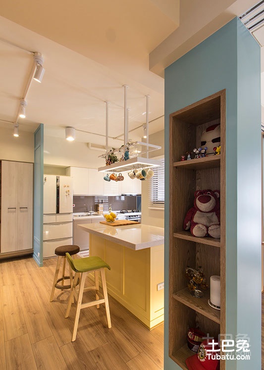 設(shè)計師局部挖空假柱外側(cè),規(guī)劃為可隨手放置小物的造型柜。