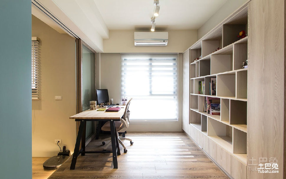 考慮到未來的使用變化,多功能室以活動家具加強(qiáng)空間活用性;后方則以系統(tǒng)柜打造整面墻的充裕收納。