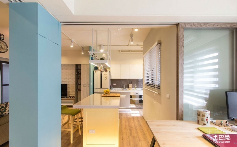 在有限預(yù)算、未來生活多變的考慮之下,「彈性活用」是設(shè)計師計提出的最佳解答,因此,以不動格局為前提,減去繁復(fù)、制式的設(shè)計語匯,利用系統(tǒng)柜與活動式家具的多元搭配,讓空間使用更靈活,滿足小倆口對未來的各種期待