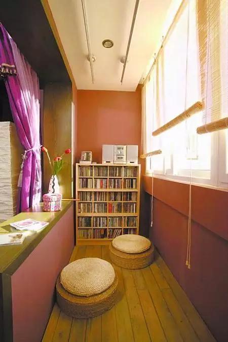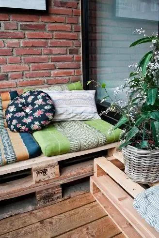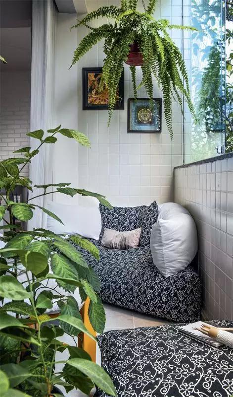 如果只需滿足坐著看書的需要,一把上好的椅子足矣(圖中的顯然不夠舒服…),百葉窗和窗邊小擱板都是亮點(diǎn)。2▲ 一半綠植+花架,另一半長(zhǎng)椅+抱枕+小茶幾你看書不妨礙我種花,看書累了,抬起頭就是一片蔥郁。如果家里準(zhǔn)備裝修,可以考慮將小陽(yáng)臺(tái)做高一級(jí)變身榻榻米閱讀角;如果家已成型,只能小打小鬧地改造,照樣可以鋪上戶外地板增加親膚感。此時(shí)透光竹簾比百葉窗更搭~陽(yáng)臺(tái)小,更要每一寸地兒都要用好!在這里,轉(zhuǎn)角書桌將陽(yáng)臺(tái)的死角活用起來(lái),構(gòu)成了一個(gè)圍合的工作區(qū),對(duì)于家里沒(méi)有書房又需要工作區(qū)的小兩口很有借鑒意義??梢圆扇蓮堥L(zhǎng)桌拼合的方式實(shí)現(xiàn)。如果陽(yáng)臺(tái)實(shí)在太窄做不了轉(zhuǎn)角書桌,利用一整面墻的垂直空間也是極好的,而且全部使用隔板實(shí)現(xiàn),費(fèi)用不會(huì)很高。6▲ 木卡板+坐墊+抱枕還記得周二的「家的畫面」里提及的“木托盤”嗎,對(duì)于陽(yáng)臺(tái)改造,依舊是萬(wàn)能的!某寶搜索關(guān)鍵詞#木卡板#,像圖中這樣的砌法兩張毛爺爺左右搞掂。如果用在陽(yáng)臺(tái),記得要買通過(guò)防潮防腐標(biāo)準(zhǔn)的。